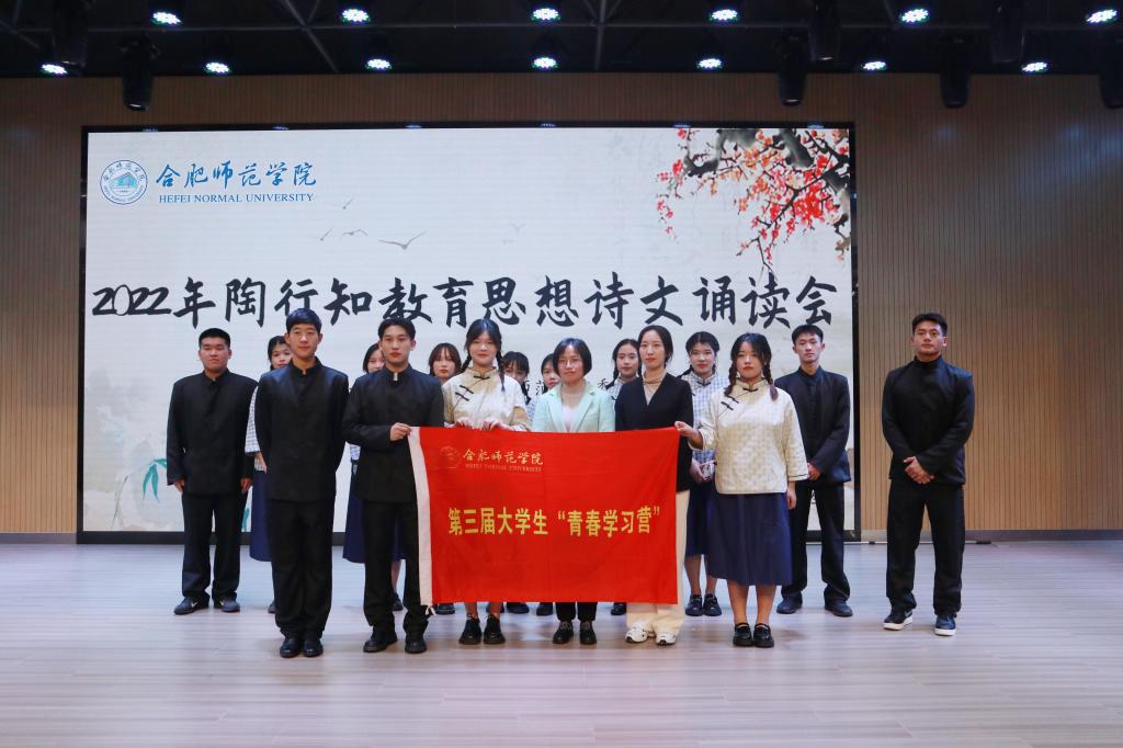 本网讯 11月18日下午,学院在锦绣校区大学生活动中心举行陶行知教育思想诗文朗诵会,第三届大学生“青春学习营”选拔了来自马克思主义学院、音乐学院、生命科学学院、数学与统计学院及体育科学学院的15名优秀学员参加表演,表演节目由青春学习营指导老师、生命科学学院辅导员梁悦指导。