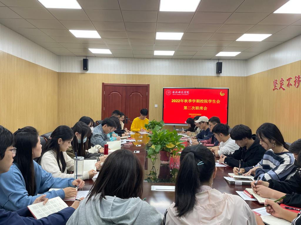 本网讯 10月31日晚,2022年秋季学期校院学生会第二次联席会在锦绣校区共青之家会议室召开,院团委副书记刁文彬、院学生会和各二级学院学生会负责人员参加本次会议。