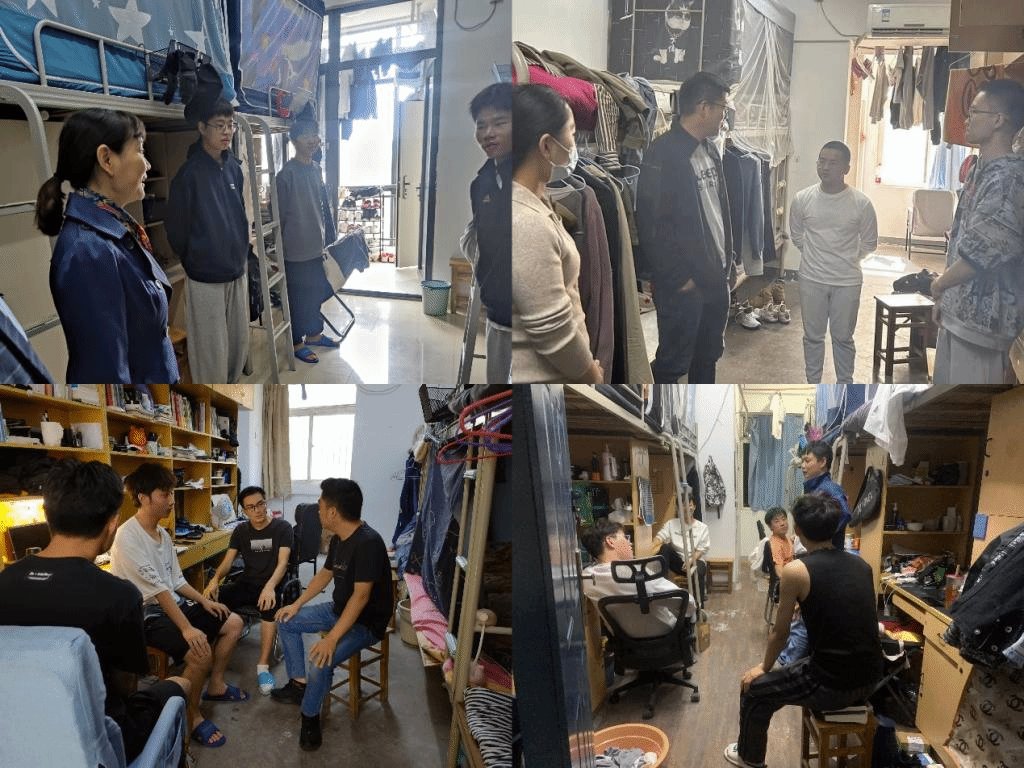 本网讯 为进一步了解同学们的思想动态和学习生活状况,加强宿舍安全管理,数学与统计学院党委书记郑支农、副书记陶金昌和全体辅导员深入学生宿舍,与学生亲切交流,倾听学生诉求和解决学生实际困难,给学生送去温暖与关怀。