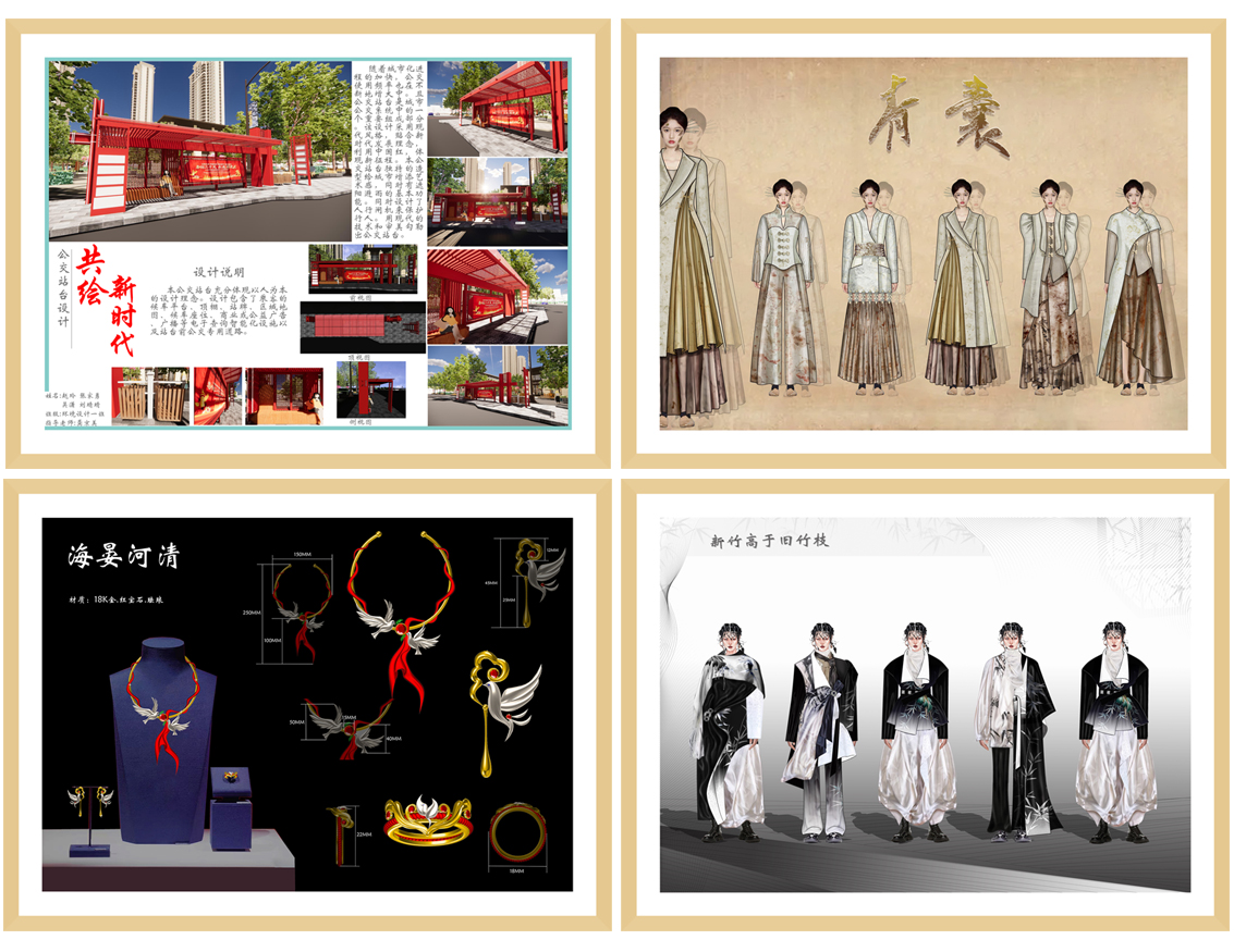 经活动小组认真评阅,从中精选视觉传达设计、环境设计、服装与服饰设计等各类设计作品30余幅,这些作品与时代同频共振,从不同视角讲述“中国故事”,在新时代新征程上展现文艺新面貌新作为。(艺术传媒学院:曹烨君)
