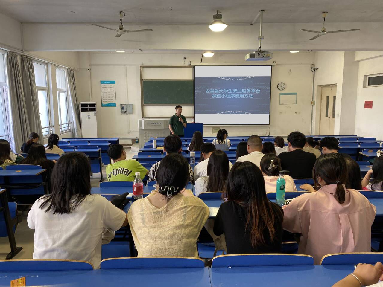会上,各班级辅导员号召学院毕业生要重视就业工作,像大家讲解了就业方式的转变以及毕业生求职心理应对的相关问题,同时就国家、省市以及学校的政策进行精准解读,对毕业生考研、考公务员、求职等方面做了具体细致的指导,让毕业生们清楚掌握各项准备工作的要点和毕业前后的职业道路规划。辅导员希望大家充分考虑自身状况,充分考虑基层就业、体制招考、应征入伍、继续深造等就业方向,让毕业生们根据自身能力选择适合自己的道路。会议最后,各班级辅导员利用此次主题班会跟大家详细讲解“安徽省大学生就业服务平台”微信小程序使用方法,指导学生确认生源信息、填写本人及家庭联系方式,并耐心指导学生熟悉网签操作流程,完成电子简历更新维护。