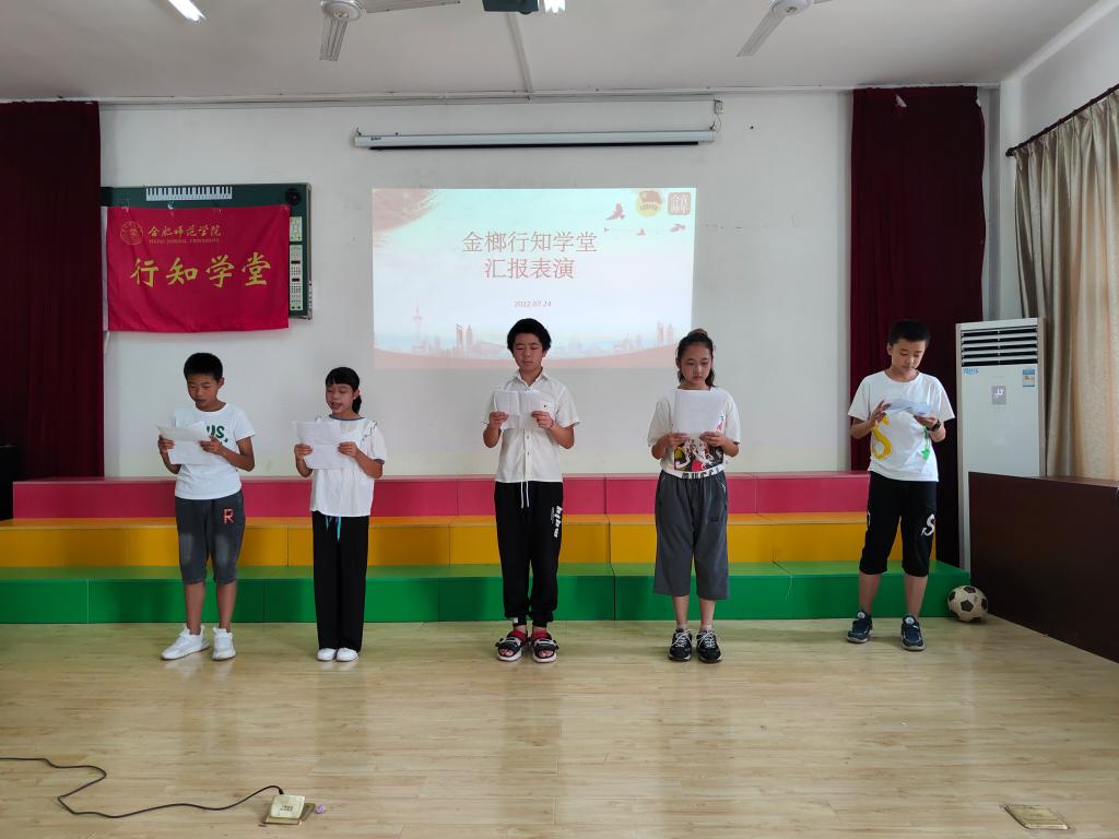 本网讯 7月24日上午,为期20天的院团委铜陵金榔行知学堂暑期社会实践活动圆满落幕。结业仪式暨文艺汇演活动在金榔初级中学顺利开展,金榔中学校长钱朝亮,教导主任何淼、张日新,全体“小先生”,小学员及家长参加活动。
