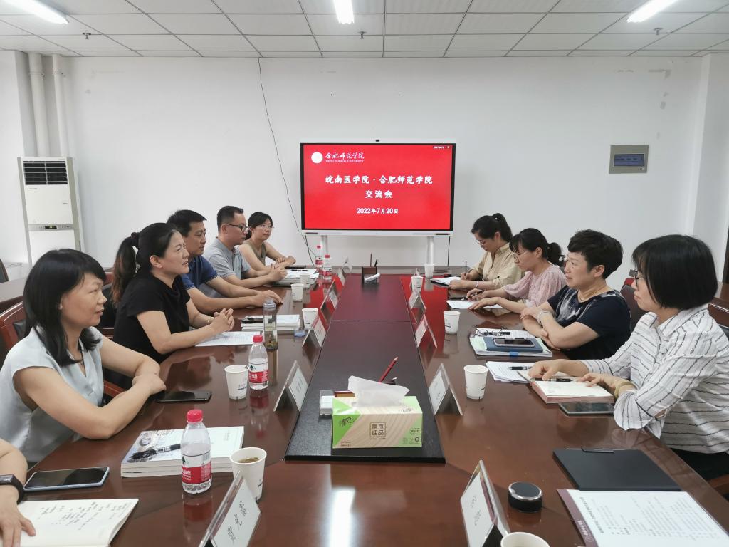 本网讯 7月20日下午,皖南医学院学工部部长张建英、护理学院党委书记陈抗震等一行6人来我院调研交流。学生工作部部长陆涛、副部长刘艳接待了张建英一行,学生工作部相关工作人员及辅导员代表参加了交流会。
