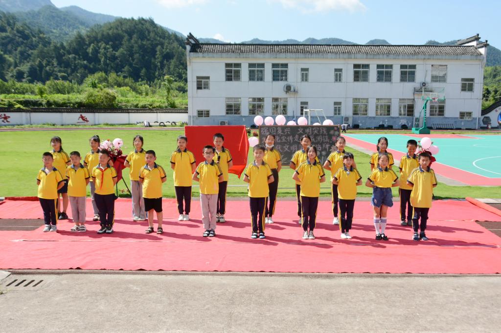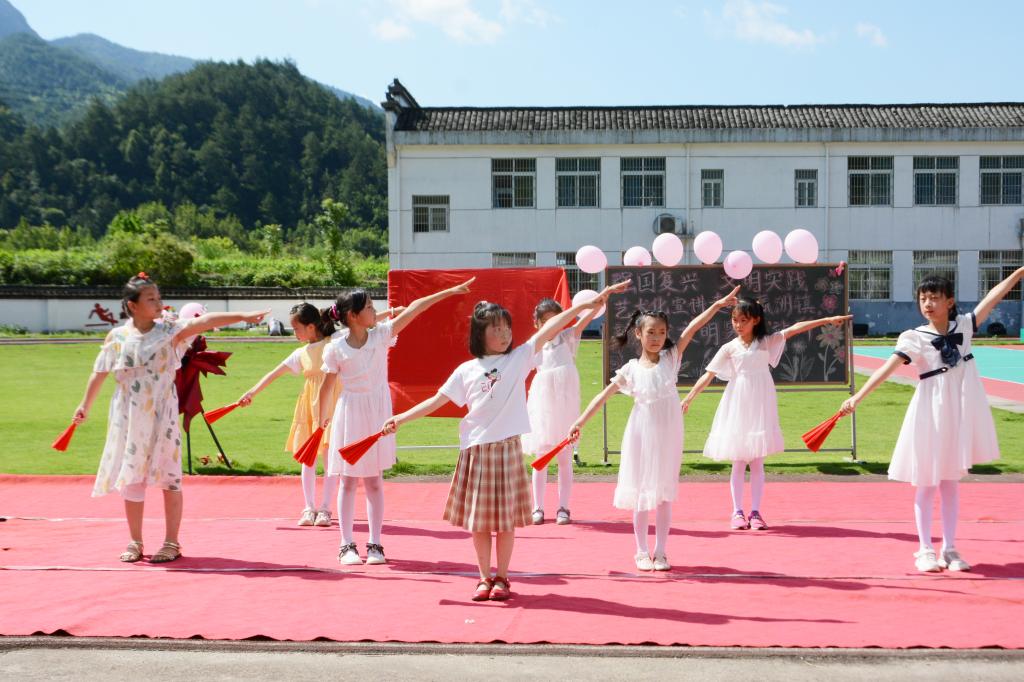 文艺表演由诵读家训、作品展示、舞蹈表演和童声合唱四个部分组成。家训朗诵表达了孩子们对于家训家规的崇敬之情;绘画“我眼中的绩溪”,展现了孩子们眼中绩溪的万千风情;徽雕艺术作品展示,彰显了孩子们对中华优秀传统文化和特殊技艺的热爱;舞蹈《雪龙吟》,体现了孩子们对于绩溪山清水秀的赞美之情;合唱《童心向党》突出了孩子们对加入中国共产党的向往和追求。