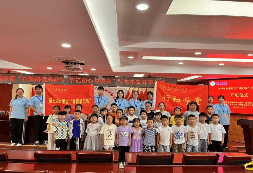 本网讯 服务留守儿童,践行行知精神,共筑青春梦想。7月1日下午,物理与材料工程学院“燕归巢”行知学堂在肥西县上派镇金星社区正式开班。金星社区主任殷莺与beat365物理与材料工程学院、化学与化工学院、生命与科学学院共计8名行知学堂小先生、全体小学员及家长共同参加了开班仪式。