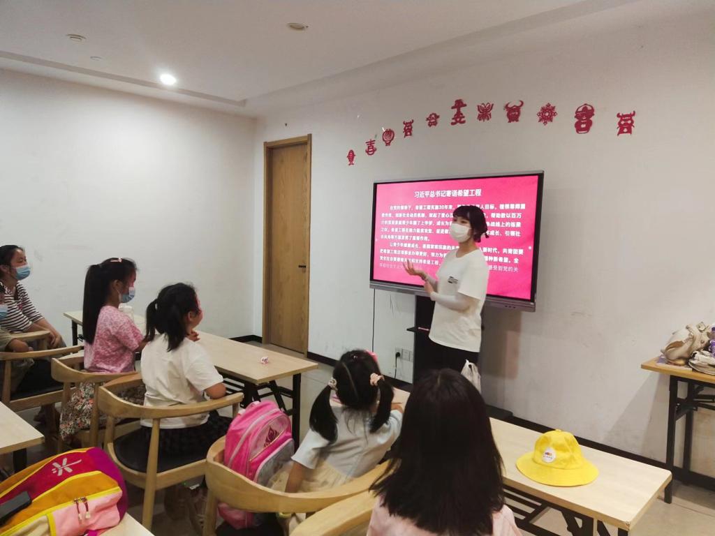 此次开班仪式是由夏稚行知学堂的领队小先生陈睿主持的。首先,她向全体同学和家长介绍了我院行知学堂的办学理念、办学背景以及学堂的概貌。行知学堂自开办以来,一直深受广大学生的喜爱,在安徽多地以公益课堂为形式开展,引导青年学生实践出真知、实践长真才,也曾多次被《中国青年报》《人民日报》等媒体宣传。本次夏稚行知学堂以“思想教育”“兴趣培养”“科学普及”“情感教育”“心理辅导”“劳动教育”“公益实践”“安全防护”“课业辅导”为主要内容,开展了十五项课程,并安排专门的小先生进行教学教导。