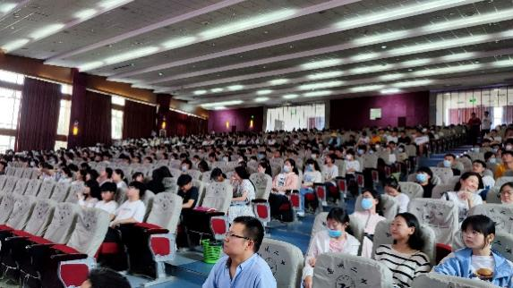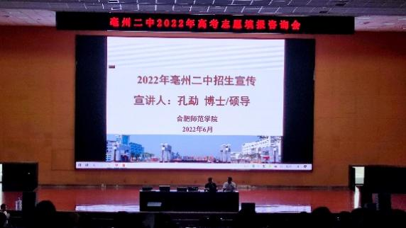 挂牌仪式结束后,专业负责人孔勐博士在亳州二中大礼堂进行了招生宣讲,孔勐首先简要介绍了学校和学院办学历史、定位,并着重介绍了学校近年来的招生录取分数、排名等情况。