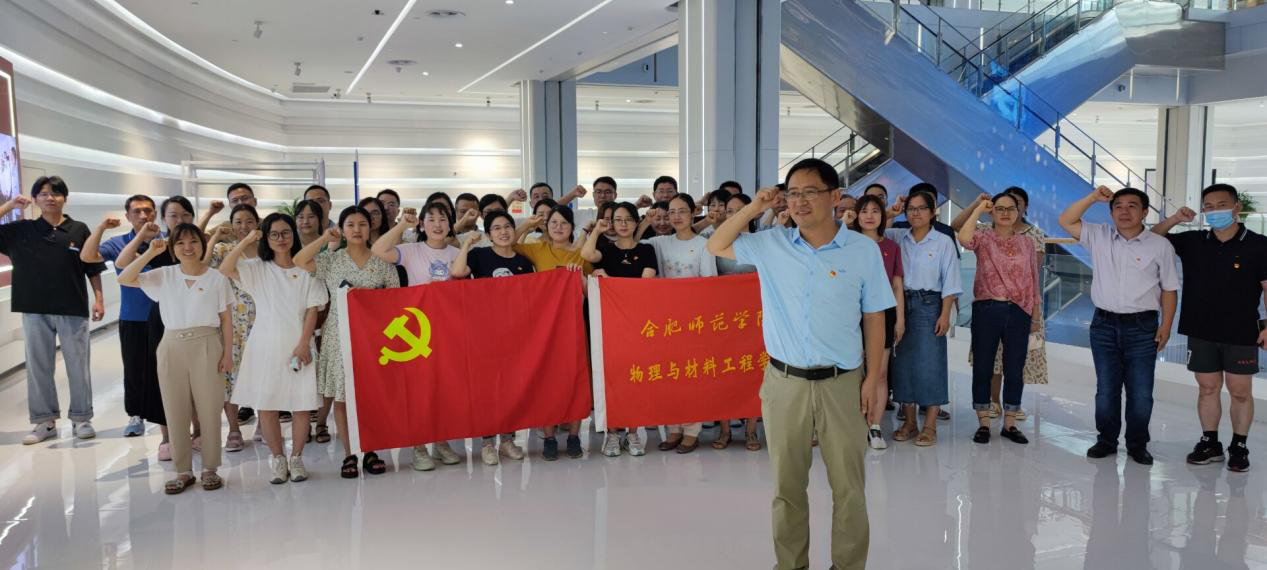本网讯 为庆祝中国共产党成立101周年,丰富拓展党史学习教育,激励党员师生奋发有为,进一步提高教职工干事创业的积极性,6月22日,物理与材料工程学院党委组织全体教职工党员和部分学生党员赴安徽创新馆,开展聚焦科技创新的“喜迎二十大、启航新征程”主题党日活动。