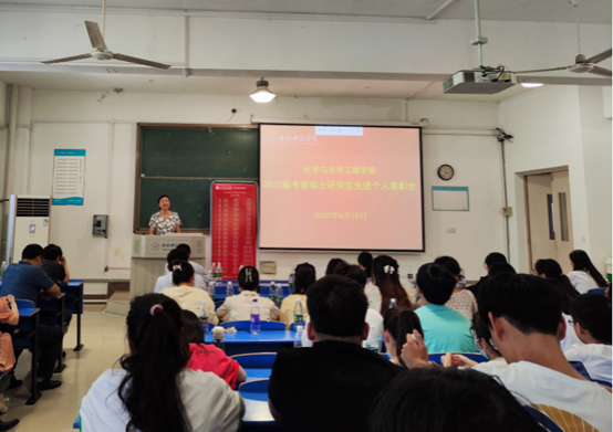 董华泽向与会的教师、学生介绍了学院本年度2022届学生考研情况,通报了学院近三年考研升学情况。