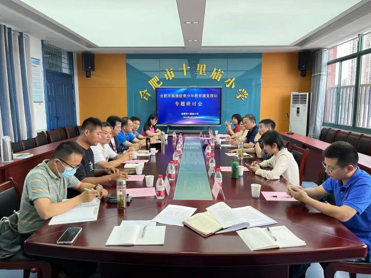 本网讯 为推进融合教育,提升高校服务地方能力,6月10日下午,体育科学学院副院长黄武胜教授一行来到合肥市十里庙小学参加在该校举行的合肥市孤独症青少年教育康复理论专题研讨会。合肥市十里庙小学校长宋方达、庐阳区为民社会工作服务中心负责人李全志、合肥市心怡康残疾人健康服务中心负责人张晓莉等参加研讨会。