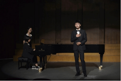 音乐会由中国古代诗词声乐作品组成,从先秦时代到汉代,再到唐宋时代,这一帧帧古代诗词充分展现了中华民族优秀的传统文化,体现了丰富的课程思政内容。音乐会在任玉玺婉转深情的演唱《越人歌》中拉开帷幕,接下来一系列的作品使观众们听得如痴如醉:范丽云演唱的先秦时代作品《关雎》和杨雪艳演唱的汉乐府《长相知》,让人沉浸在诗人浓浓的情谊当中;吴赛的《枫桥夜泊》和余跃飞的《大江东去》词情感深沉,展现了我国优美的如画景色和对历史人物的感叹;吕庆伟演唱的《长相思·惜别》感情热烈奔放而又深挚缠绵;程杨阳演唱的《青玉案·元夕》用纯净的音色和真挚的情感把观众带入到歌曲的意境之中;最后,裴赞演唱岳飞的《满江红》将音乐会的气氛推向高潮。此次音乐会共演唱了13首不同朝代,风格多样的声乐作品。