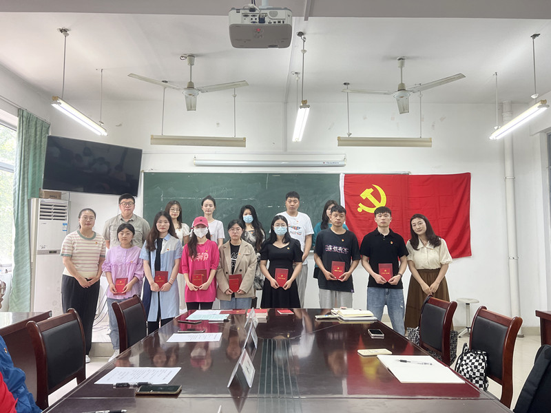 活动第三项议程,由党支部书记赵振岭、李舒、戴玉佩为毕业生党员代表发放《中国共产党章程》、佩戴党员徽章。而后,全体与会党员肃立在党旗下重温入党誓词。铿锵恢宏的誓词,强烈震撼着在场的每一位党员,体现了党员同志们对中国共产党的无限忠诚。