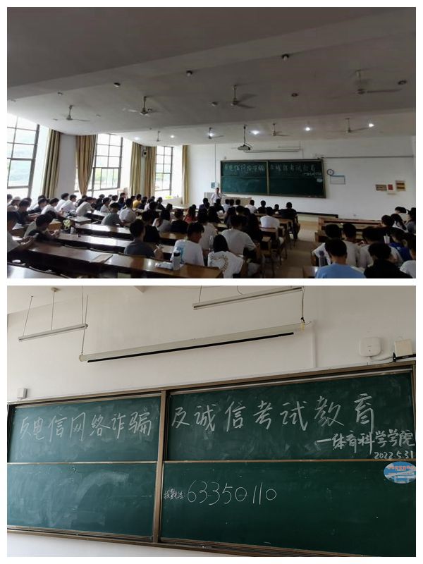 本网讯 为加大反诈知识的宣传普及力度,切实加强大学生消费观和反诈安全教育,教育引导学生提高风险防范意识,5月31号中午,体育科学学院在博约楼101组织开展“营造诚信考风·谨防网络诈骗”主题教育。体育科学学院党委副书记王飞、各班辅导员和2021级各专业全体学生参加。
