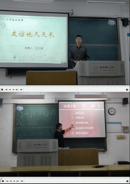 教育见习环节共设说课和课件制作两项比赛,经过各指导教师组内遴选后,共计40名同学录制视频参赛,参赛内容与评分标准均参照安徽省师范生技能竞赛,紧扣音乐学专业培养方案与学生毕业要求,有效强化了师范生的教学技能。经过12位评委老师的评选、最终20级音乐学专业胡丽娜和19级音乐学专业彭梦凡荣获课件制作比赛一等奖,19级音乐学专业王宇翔和20级音乐学专业王立绎荣获说课比赛一等奖。