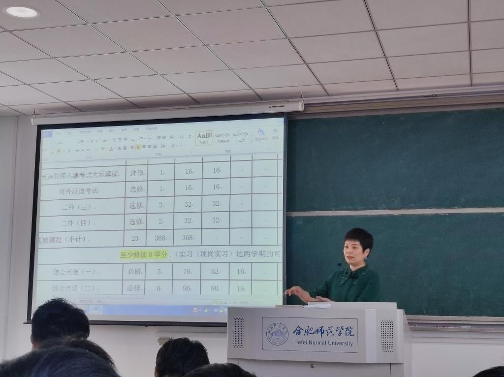 本网讯 为进一步指导师范生切实做好学业规划,提高师范生培养质量,5月24日下午,外国语学院在博学楼A203教室召开师范生学业成长指导会,本次会议由外国语学院英语系主任钱莉娜主讲,学院2021级全体师范生参加此次会议。