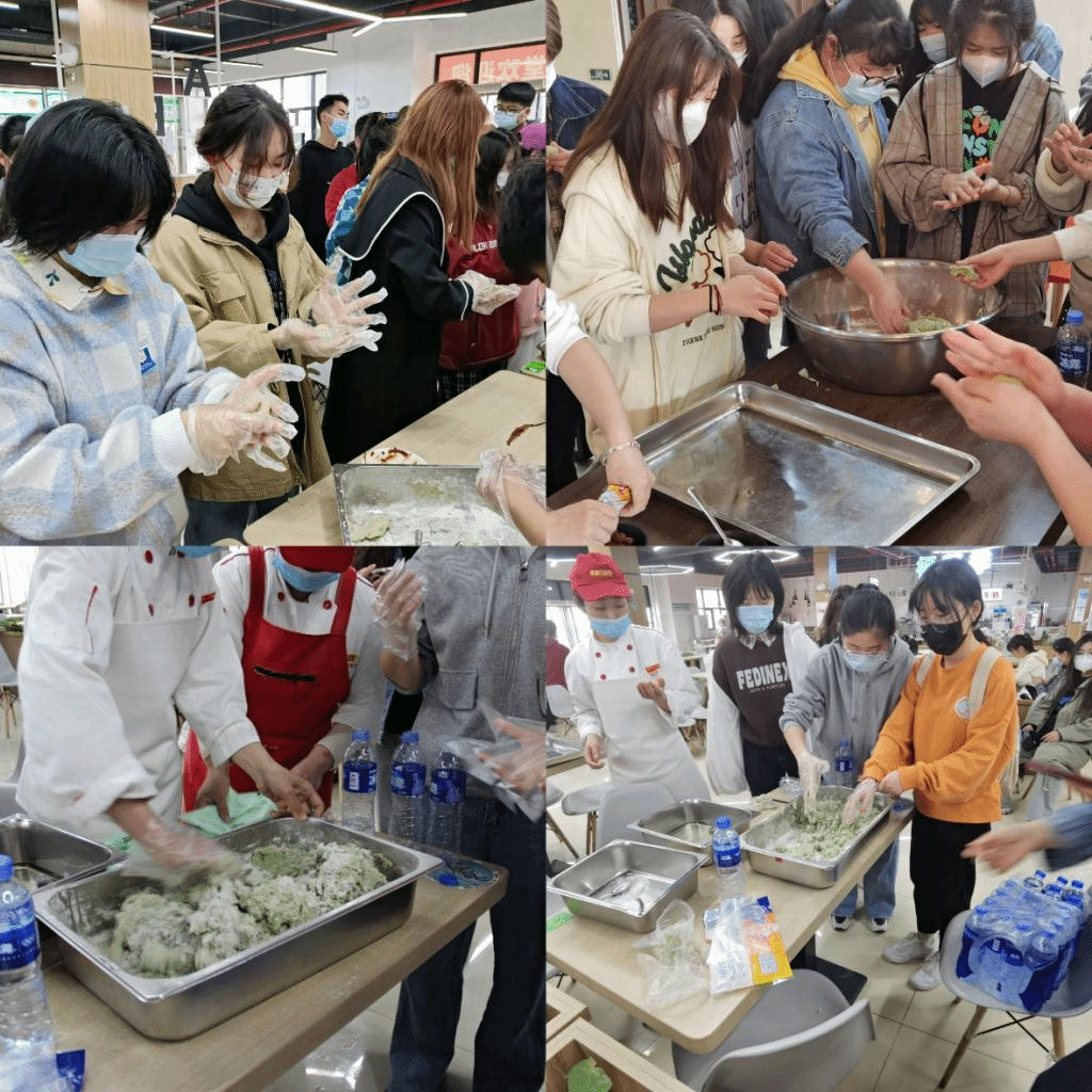 活动伊始,同学们遵守疫情防控要求佩戴口罩,在餐厅有序进行“青团”制作。大家分工明确,分组完成艾草榨汁、揉面团、包馅料等工序,最后进行蒸制,有条不紊地完成了每个步骤。品尝着亲手制作的“青团”,同学们热情高涨,纷纷表示“本次活动既了解了清明习俗,又尝到了传统美食,收获满满”。活动现场充满艾草的清香与同学们的欢声笑语。