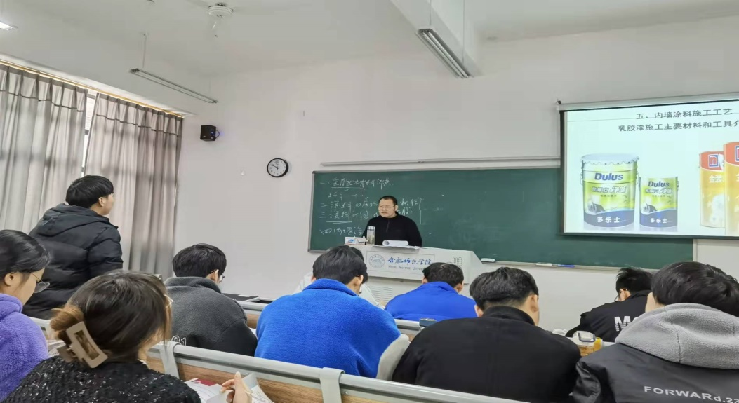 杨泽银副教授讲授的涂料与施工工艺课程,理论结合实践,从环境设计到当下建筑和室内装修带领同学们作了“极速”的穿越,让同学们认识到涂料与生活的关系,认识到中国人的智慧,将思政元素融入到教学中,激起同学们学习兴趣和在实际使用涂料中反映传统审美观的意识。整堂课杨老师充满激情,学生参与度高,教学目标大程度高,应用性突出,取得了很好的教学效果。