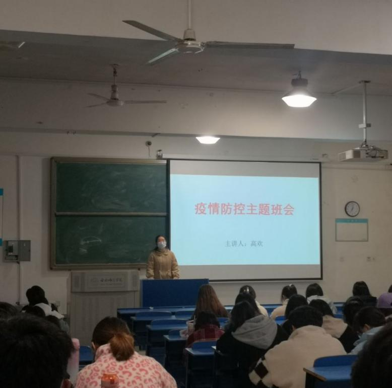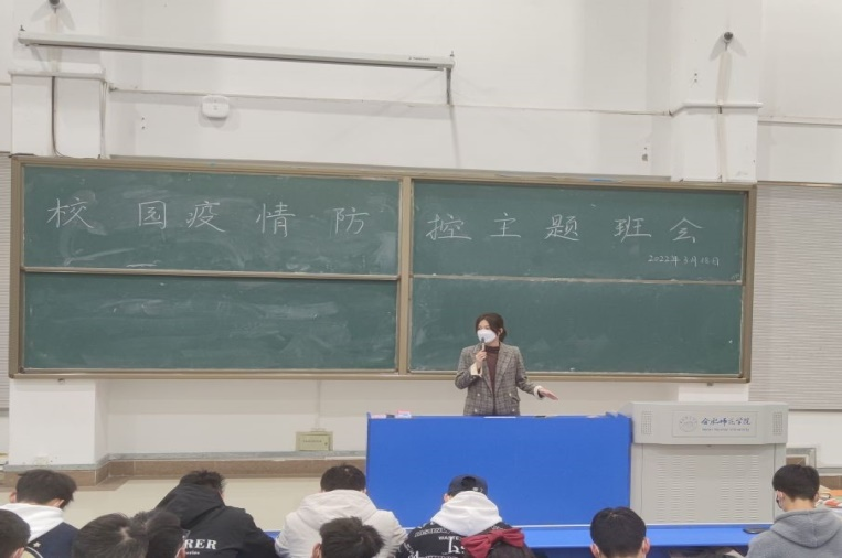班会中,辅导员向同学们强调了做好常态化疫情防控工作的重要性,引导学生在紧要关头树立大局意识和安全意识。深入解读了学校最新疫情防控的相关文件和精神,从校门管理、请销假管理、学生离返校健康备案、体温异常上报管理等方面,要求同学们严格遵守校园疫情防控管理规定,非必要不外出,日常一定要佩戴口罩、勤洗手、注意寝室通风和卫生。