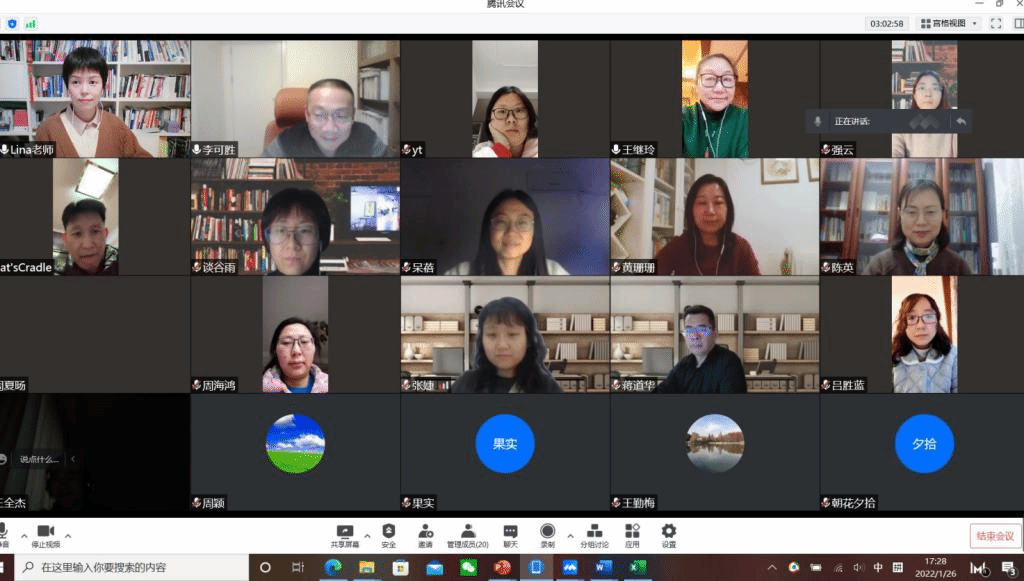 本网讯 1月26日下午,外国语学院召开了英语专业实习(研习)总结会议,会议通过腾讯会议软件线上进行。副院长李可胜,英语系主任王继玲老师,副主任钱莉娜老师以及全体实习指导教师参与了本次会议,会议由英语系副主任钱莉娜老师主持。