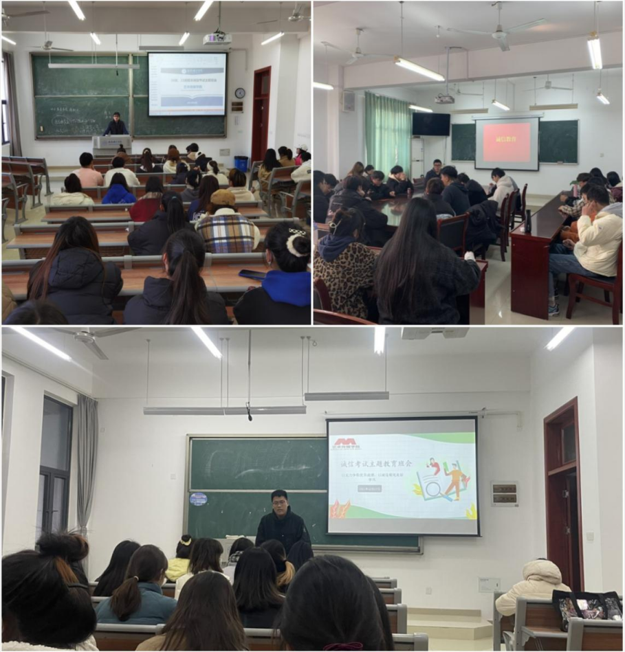 本网讯 为增强学生的诚信意识,培养诚信品质,切实提升我院诚信教育成效,12月中旬以来,艺术传媒学院两校区陆续召开诚信考试主题教育班会。会议由各年级辅导员主持。会上,辅导员们号召全体同学积极树立“做诚信人、说诚信话、办诚信事”的诚信观念,严格遵守考试纪律,拒绝作弊行为,从自身做起,用实际行动营造良好的学风氛围。引导同学们从自我做起,从严格遵守考风考纪做起,知荣明耻,培养诚实守信的道德品质,以实际行动带动周围同学,相互监督,共同进步,争做新时代诚信大学生。