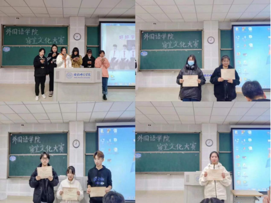 本网讯 为营造健康文明、活泼向上的学习、生活氛围,11月27日外国语学院在滨湖校区博学楼D101举办第二届寝室文化大赛,比赛由院学生会主席团成员杨宵瑛、学生服务部部长曲珊仪、学生服务部副部长豆子欣、第二课堂调查部部长许涛以及优秀寝室长代表张浩然、彭立辉担任评委。