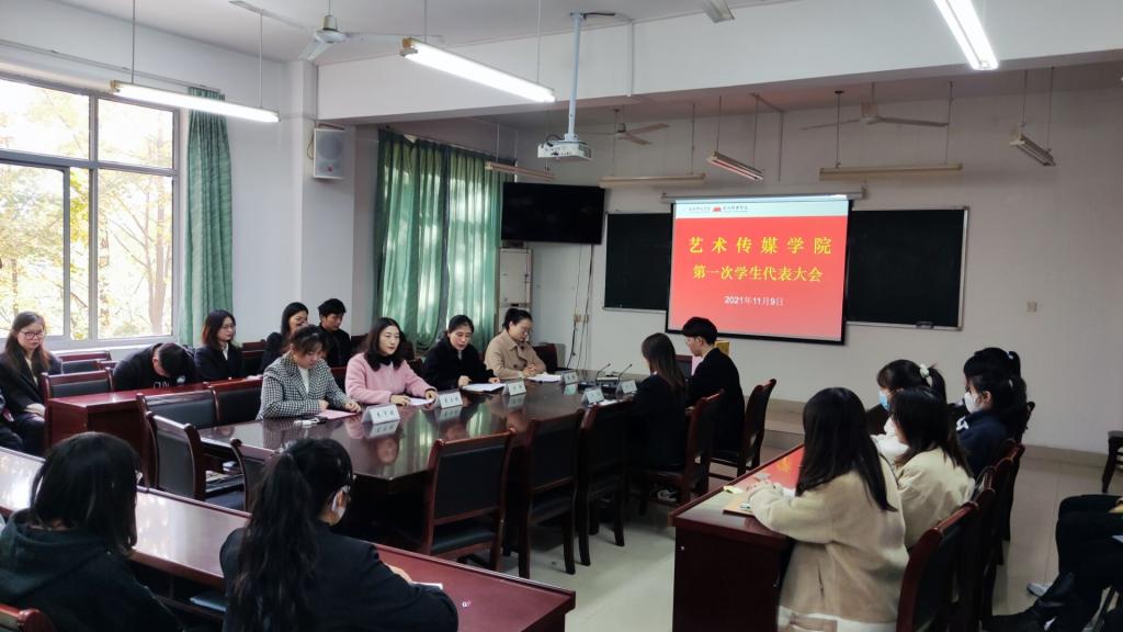 本网讯 11月9日,艺术传媒学院第一次学生代表大会在艺术楼202会议室召开。艺术传媒学院党委副书记沙渺、分团委副书记朱宇迪、辅导员李舒以及来自全院各班的43名学生代表出席大会。会议由团委书记戴玉佩主持。