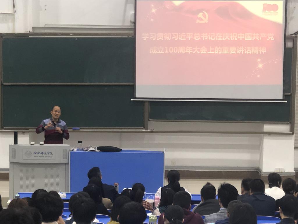 本网讯 为进一步深入学习贯彻习近平总书记在庆祝中国共产党成立100周年大会上的重要讲话精神,推进学院党史学习教育走深走实,生命科学学院党委于10月13日下午在逸夫楼西阶一教室举办了习近平总书记“七一”重要讲话精神宣讲会。会议邀请马克思主义学院副院长陶有浩教授作专题宣讲报告,生科院党委书记郭桃芬主持。全体教职工、学生党员及入党积极分子参加。