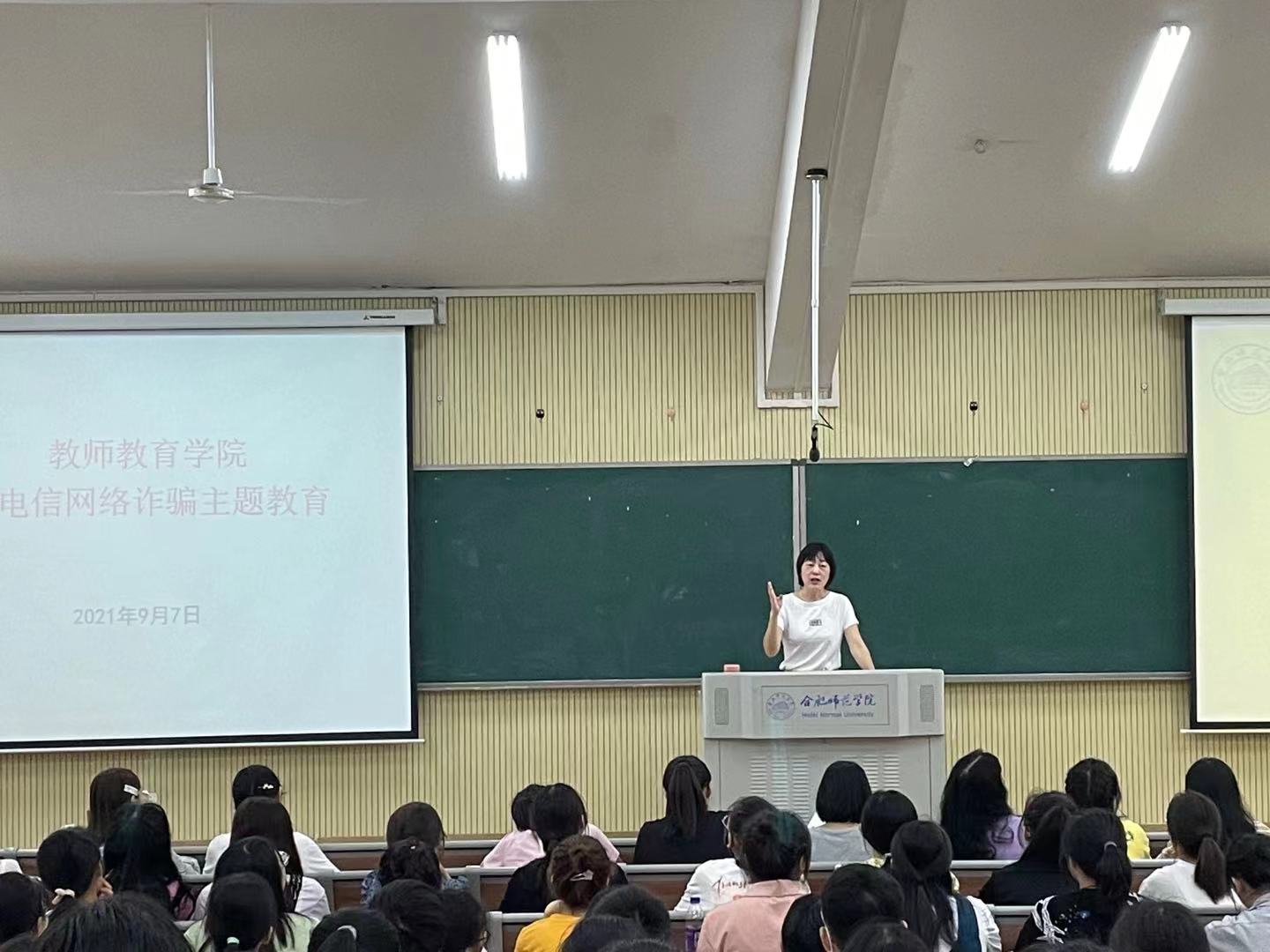 辅导员董丹丹于9月8日在滨湖校区开展了反诈安全教育主题班会。(教师教育学院:屠家宝 顾锦锦)