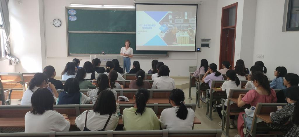 本网讯 沐浴秋日暖阳,领略书香气息。为了帮助新生尽快了解所学专业,9月8日上午,教师教育学院在滨湖校区博学楼A104召开2021级应用心理学专业新生专业介绍会,心理系黄凤老师主讲,2021级应用心理学专业全体同学参加。