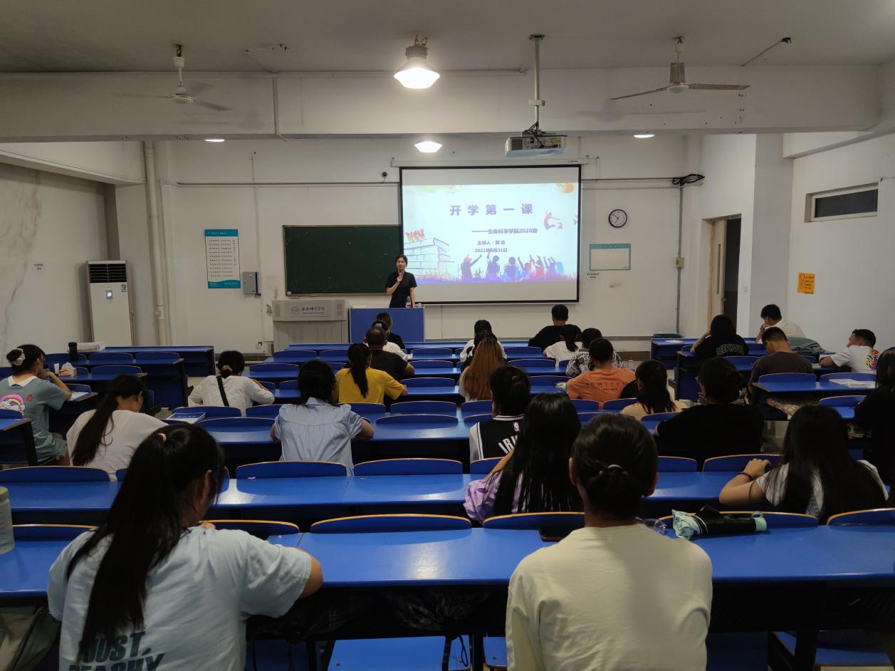 本网讯 新学期伊始,为进一步加强新学期学生思想政治教育和班级学风建设,激发学生学习热情,营造良好学习氛围。8月31日晚,生命科学学院20级辅导员黄洁组织召开新学期“开学第一课”主题班会,为遵循疫情防控“非必要不聚集”要求,生物科学师范一班于逸夫楼109召开线下班会,2020级其他班级通过腾讯会议参与其中。