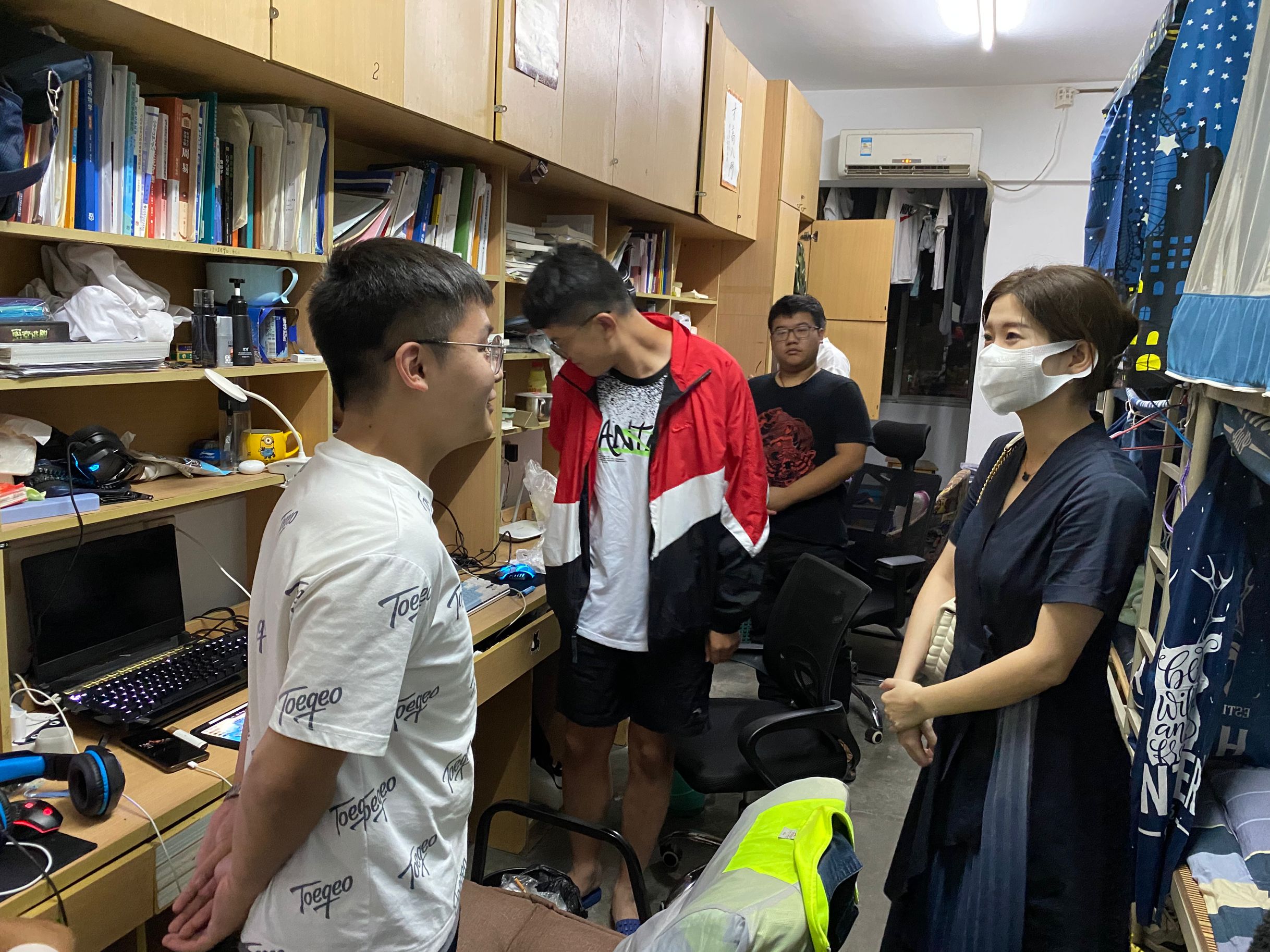 班会结束后,黄洁走进学生宿舍,深入了解学生返校、学习和生活等情况,在走访女生322宿舍时,悉心询问了来自新疆的麦合皮莱提·尤力瓦斯返校历经的路程、时间和自我防护情况。