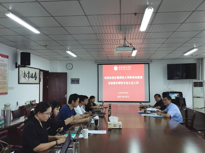 本网讯 为进一步找准专业认证准备工作中存在的问题,顺利迎接认证专家组进校考察,8月27日上午,安徽师范大学陈明林教授应邀到生命科学学院指导生物科学专业认证工作。会议在行知楼1502举行,院长徐忠东、副院长朱桂兰和全体师范专业任课教师、实验员等参加了会议。