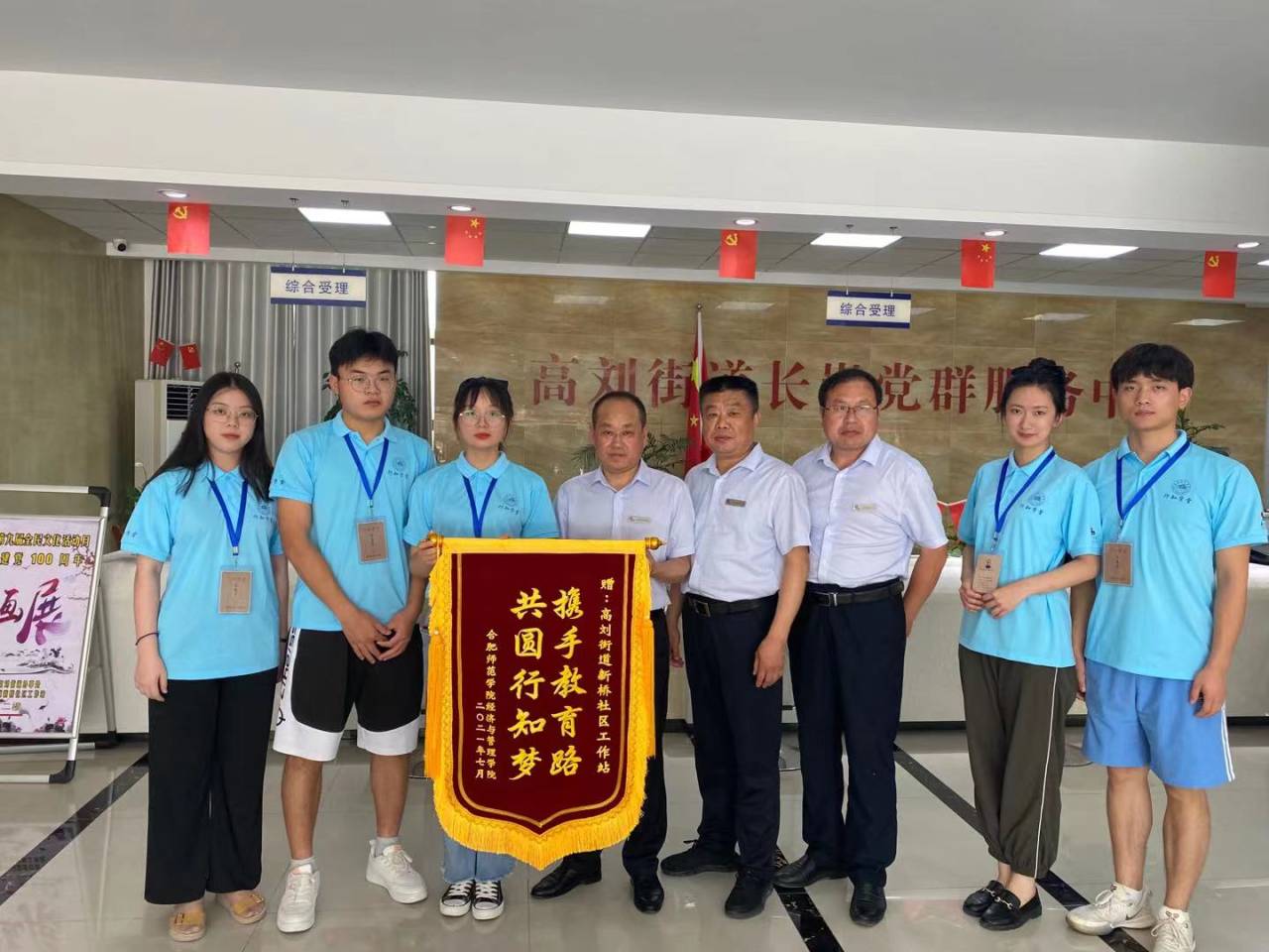 课程结束后,为感谢高刘街道新桥社区工作站对于本次行知学堂的大力支持与帮助,“小先生”们代表beat365唯一官方网站经济与管理学院,向社区工作站赠送了题为“携手教育路,共圆行知梦”的锦旗,社区工作人员热情接待了“小先生”们,并与“小先生”们留下了珍贵的合影。