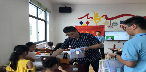 刁文彬一行走进了我院旌德“行知学堂”课堂,认真观摩了“小先生”们的课堂教学,充分肯定了“小先生”们的工作,向小学员们送去了祝福,并赠送了学习用品。