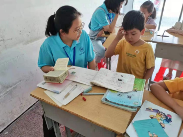 “红帆行动”行知学堂的4名“小先生”来自外国语学院和文学院,经过“小先生”们前期精心的策划和准备,学堂共招收到6名学生,大多数是二、三年级的学生,还有两名中班的幼儿园小朋友。“小先生”们充分考虑学员的年级分布情况,以“寓教于乐”为教学理念,采用自由、民主的教学方式,开设一系列文化课和兴趣课,不断丰富小学员的暑期生活。