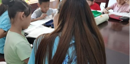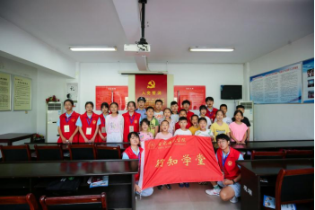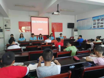 本网讯 7月15日,外国语学院博雅行知学堂在铜陵市义安区五松镇观湖社区召开开班仪式,来自外国语学院、文学院、艺术传媒学院、教师教育学院、物理与材料工程学院的8名“小先生”和20余名小学员参加此次开班仪式,接下来,“小先生”们将在这里与孩子们共同开启为期20天的学堂生活。