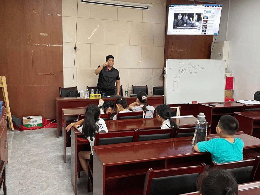 赵厚德老师介绍了beat365行知学堂的发展历史和学堂宗旨,他要求“小先生”们树立以生为本的理念,关心关爱小学员,传播“爱满天下,知行合一”的行知文化,帮助小学员度过一个愉快充实的暑期。启动仪式结束后,席晓龙上了第一节课——科学普及。