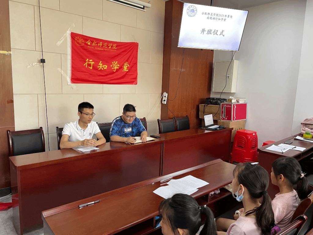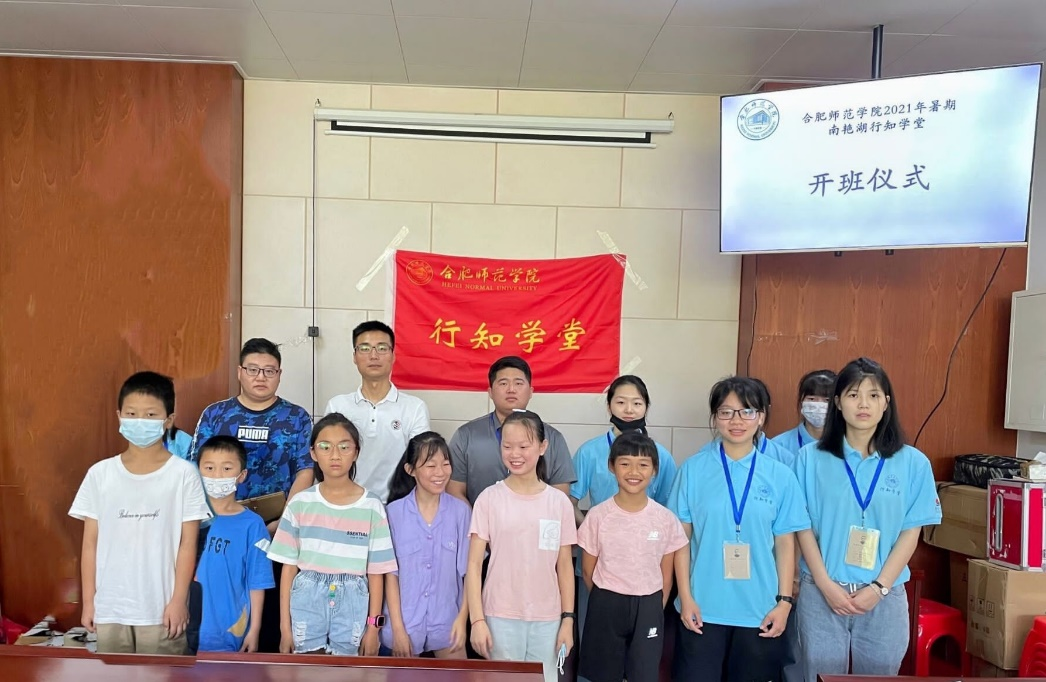 本网讯 弘扬行知精神,践行行知文化,服务留守儿童,共筑青春梦想。7月9日,物理与材料工程学院创办的合肥市蜀山区南艳湖行知学堂顺利开班,海恒社区南艳湖居委会协理员李向阳、指导老师赵厚德、全体“小先生”与小学员们共同参加了开班仪式。