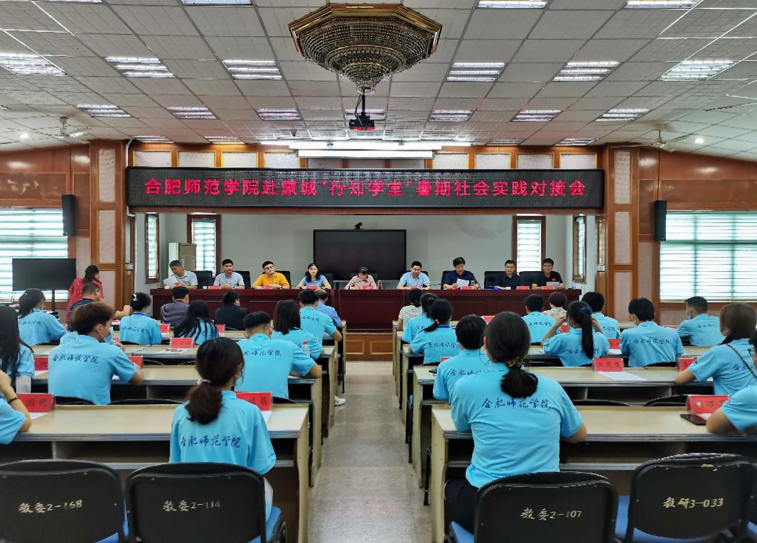 本网讯 7月12日,校团委、体育科学学院和教师教育学院相关领导和负责老师、行知学堂31位“小先生”赴蒙城县,与蒙城县教育局、团县委就2021年“行知学堂”暑期社会实践进行对接,开展“行知学堂”暑期社会实践活动。蒙城县政府、教育局、团县委负责人、学校负责人参加活动。