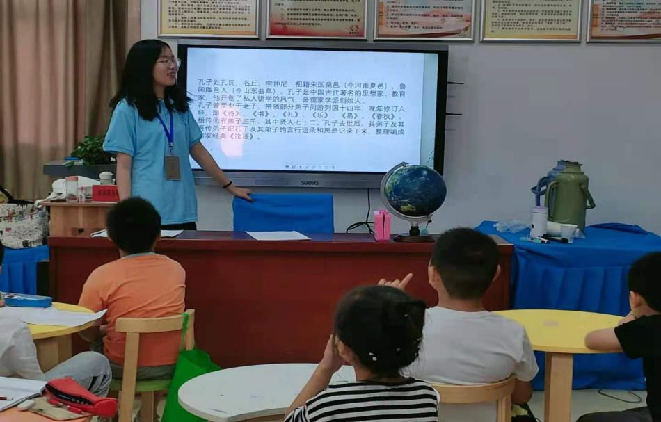 开班仪式后,行知学堂“小先生”周刘芹上了第一节课——国学朗诵。在教学过程中,“小先生”幽默的教学风格深受小学员们的喜爱,获得在场家长与社区负责人的一致认可。小学员们积极踊跃、朝气蓬勃的精神样貌,也深深打动了授课的“小先生”。(物理与材料工程学院:殷健飞)