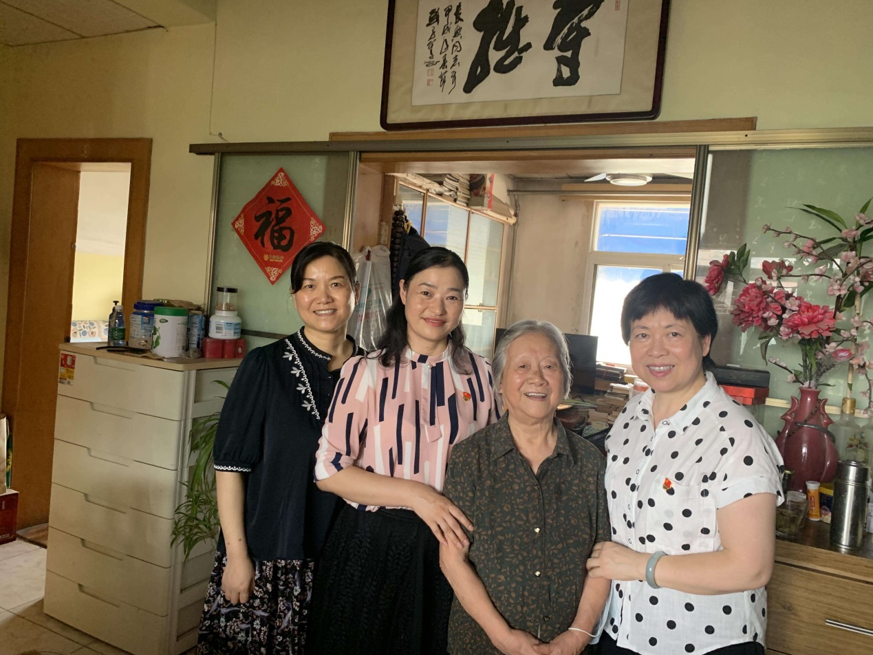 6月30日下午,学院党委书记穆娟,党委副书记、院长李群,党委委员、教工第三党支部书记吴桂翎一行来到刘美涓老师家中,为她送上节日的祝福和慰问金,对她长期以来为党的事业及学校学院发展所付出的心血、做出的贡献致以衷心的感谢和崇高的敬意,并邀请刘美涓老师出席学校庆祝建党100周年表彰大会。刘美涓老师于1956年加入中国共产党,今年已光荣在党65年。表彰大会上校党委书记徐成钢亲自为她颁发了“光荣在党50年”纪念徽章。丝丝白发耀奖章,光荣在党50年,是一份沉甸甸的荣光,也是一份宝贵的精神财富,佩戴上金灿灿的纪念章,老党员们激动不已。