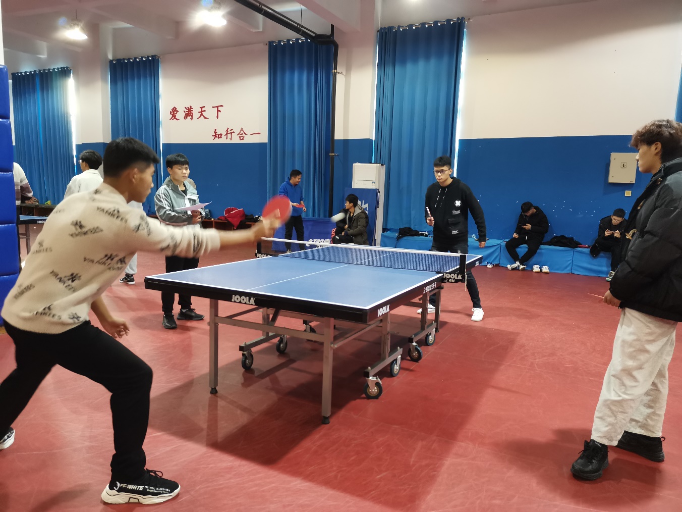 5月16日,乒乓球比赛分别在滨湖校区和锦绣校区拉开序幕,比赛分小组赛、半决赛和决赛,滨湖校区八支队伍分为A组和B组,锦绣校区三支队伍分为C组。小组赛采取积分制赛程,每组前两名出线,再采取交叉淘汰赛制,最后决出冠军。在比赛中同学们纷纷来到比赛现场为参赛队员鼓舞士气给整个比赛增添了生机与活力,最终经过激烈的角逐,A组、B组、C组分别出线的是计算机学院,教师教育学院,刘铭传学院,经济与管理学院,化学与化学工程学院和生命科学学院。