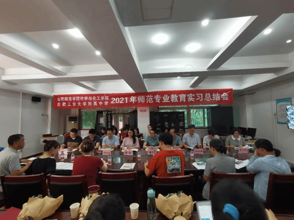 本网讯 6月11日下午,化学与化学工程学院与合肥工业大学附属中学联合举行化学师范生教育实习总结会,会议在合肥工业大学附属中学举行,学院院长董华泽教授、副院长朱金苗教授,化学教育系姚如富教授、凌波副教授、朱小红副教授、王伟老师,工大附中党总支副书记薛珍、副校长何黎明,初高中部负责人、化学组全体教师,在附中参与实习的研究生、本科生同参会,会议由校外导师、特级教师徐伟主持。