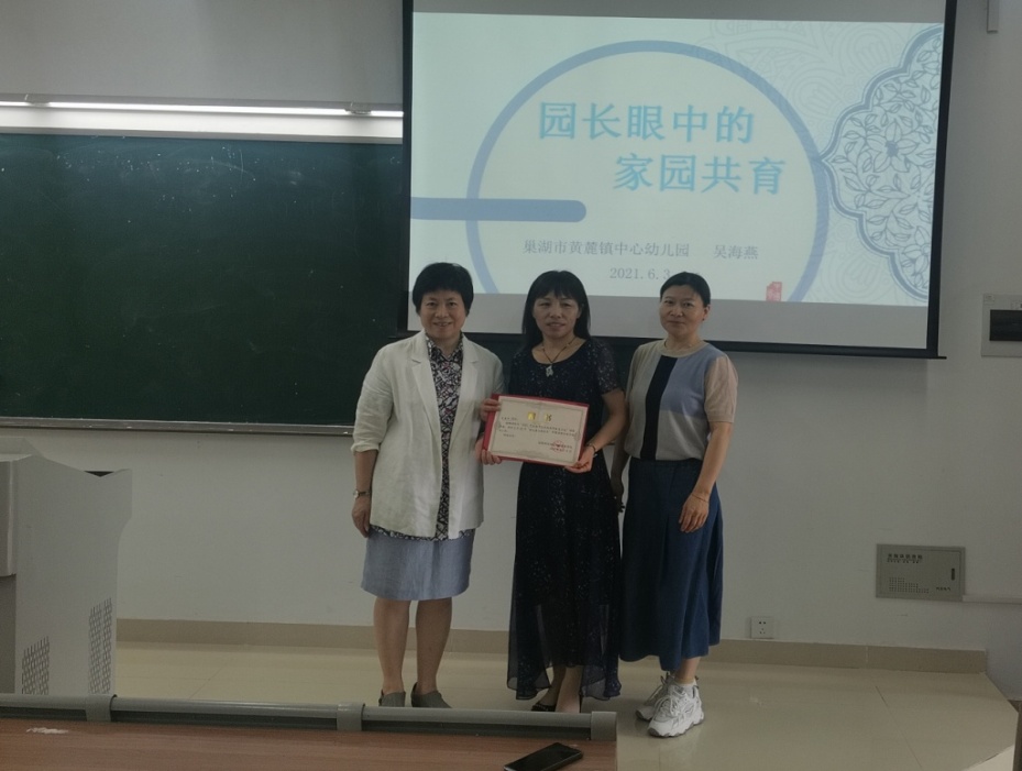 本网讯 6月3日下午教师教育学院邀请巢湖市黄麓镇幼儿园园长吴海燕为学院学前师范生做“园长眼中的家园共育”讲座,学院教师吴忠霞带领滨湖校区2019级学前教育专业师范生参加了此次讲座。