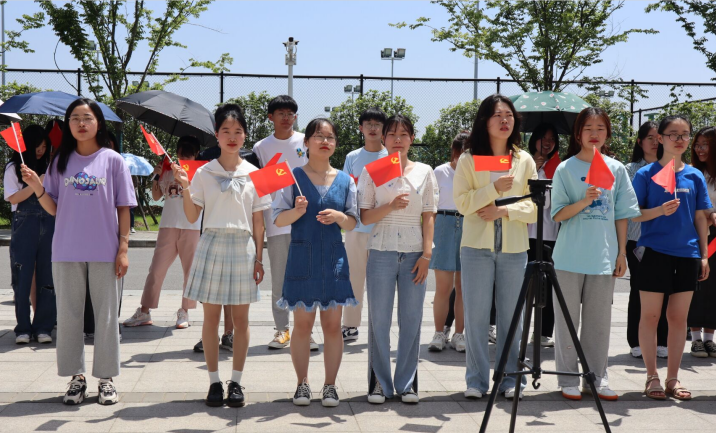 本网讯 为了更好迎接党的百年华诞,马克思主义学院思想政治教育专业学生以集体朗诵《党旗颂》的“快闪”形式,庆祝中国共产党成立100周年。日前,这一“快闪”活动在滨湖校区铭传楼前广场多次成功举办。