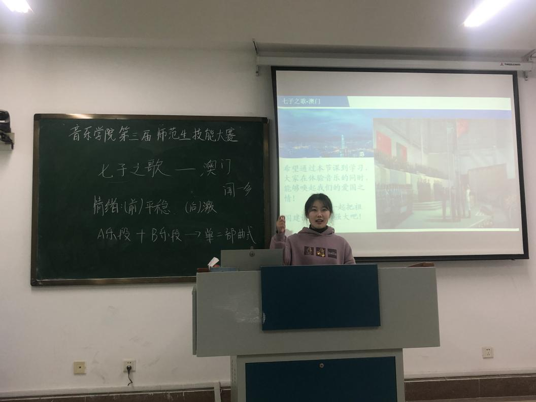 教学技能的形成是一个长期积累的过程,根据师范生的专业特点、人才培养目标和相关毕业要求,我院针对性地修订了人才培养方案,组建了师范生技能训练指导团队,开设相关理论与实践课程,有效进行师范生的技能训练,旨在通过有目的、有计划地对师范生进行较为系统的教学技能训练,引导学生将所学理论与方法转化为具体从师论教的职业行为,对标毕业要求 3学科素养和毕业要求 4 教学能力地达成,帮助学生获得良好的教学技能,以便更好地适应新时期教师职业的发展要求。(音乐学院:潘怡)
