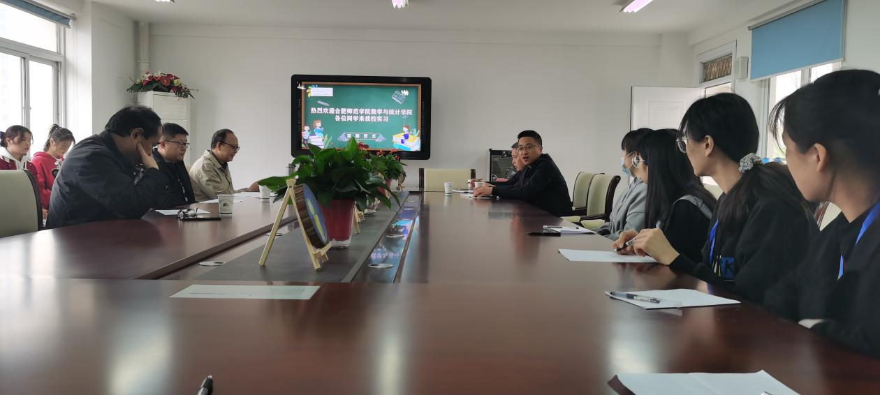 本网讯 根据学校教育实习工作安排,3月30日上午,数学与统计学院2018级数学与应用数学(师范)专业25名学生在张晓贵教授、许和乾副教授和吴兴杰副教授的带领下,赴合肥第48中学望湖校区开展为期14周的教育实习工作。合肥第48中学史承灼校长、谷峰副校长带领相关指导老师为我院实习生和带队老师举行了热烈的欢迎见面会。