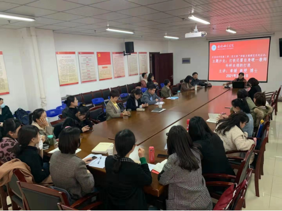 本网讯 3月31日下午,外国语学院在行知楼1002会议室开展样板支部建设推进活动,邀请章媛教授为青年党员教师举办一场“打铁还需自身硬—教师科研本领的打造”的主题沙龙。参加活动的除了教工第二党支部的全体青年教师以外,还有很多感兴趣的青年教师,外国语学院副院长李可胜教授参加活动。本次活动由学院教工第二党支部书记吴礼敬主持。