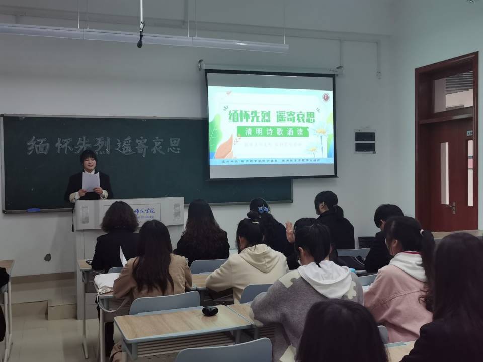 本网讯 为进一步落实学校《关于开展“学党史、强信念、跟党走”学习教育的通知》精神,做好大学生党史学习教育,3月31日,教师教育学院在滨湖校区刘铭传楼A302教室开展以“缅怀先烈 遥寄哀思”为主题的“学史明理”——清明诗歌朗诵比赛。