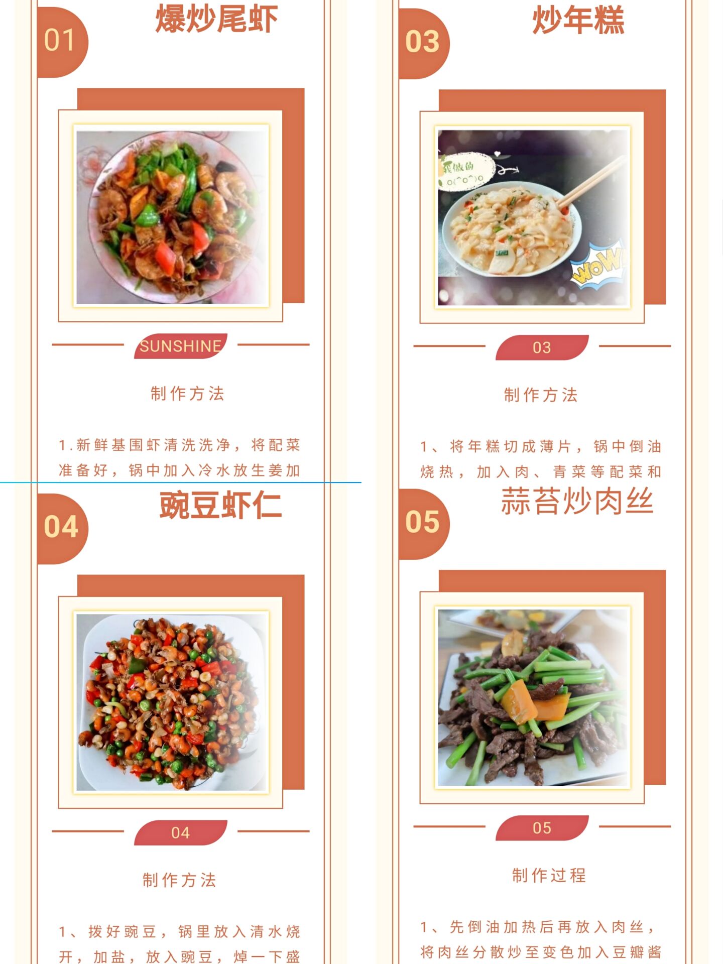自己动手,丰衣足食。“新学一道菜”不仅让同学们掌握了一项生活的必备技能,在与家人一同品尝的过程中更是增进了彼此的感情。王雯静同学做的“爆炒尾虾”,颜色丰富多彩,虾的红、椒的绿炒出了一份对生活的热爱;徐文君同学做的“炒年糕”,是儿时的味道,更是对家乡的牵绊;孙康龙同学做的“蒜苔炒肉丝”,不仅是他最喜欢的一道菜,也是对姥姥的回忆。